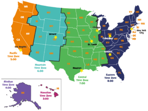 Students learn the math behind time zones, then compute flight times and zone changes to make it to the Super Bowl!